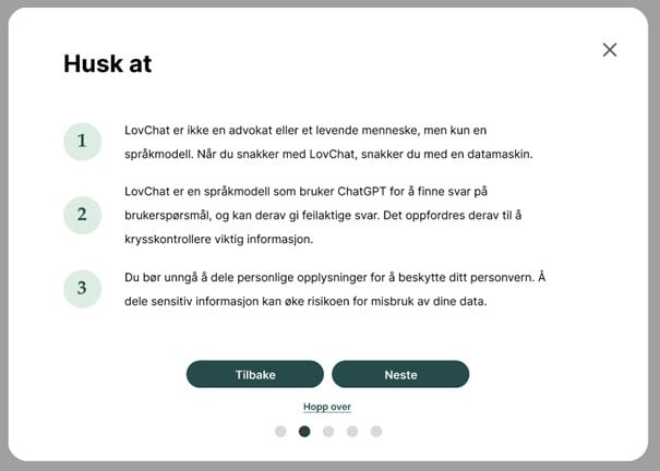 Mange sliter med å forstå norske lover og har utfordringer med å finne og forstå juridisk informasjon på nettet. Med LovChat er juridisk veiledning kun en samtale unna. LovChat er en chatbot som gir raske og enkle svar på dine juridiske spørsmål.